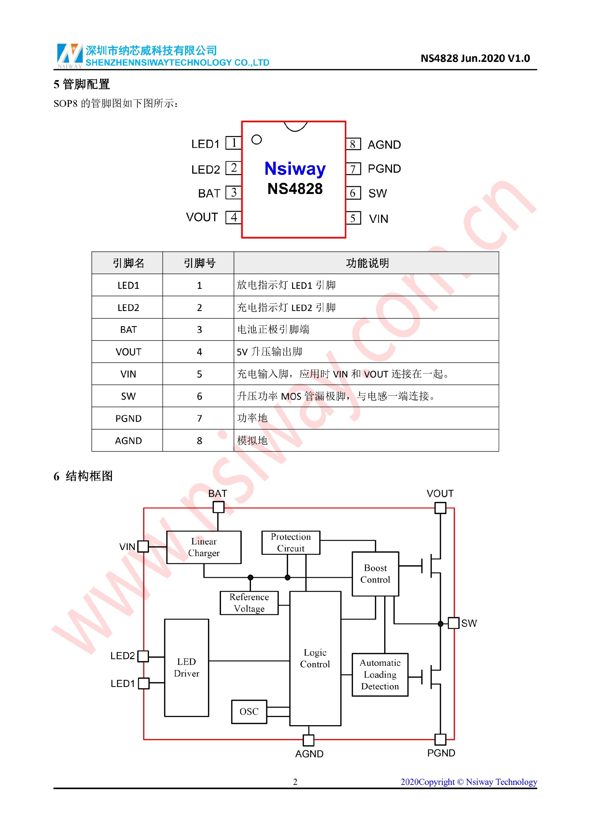 NS4828 0.8A 線性同步移動電源管理芯片