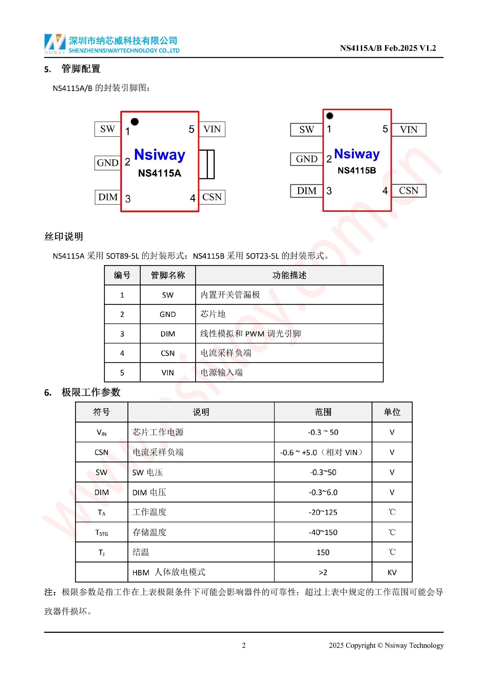NS4115A/B 1A內置功率管LED恒流驅動器