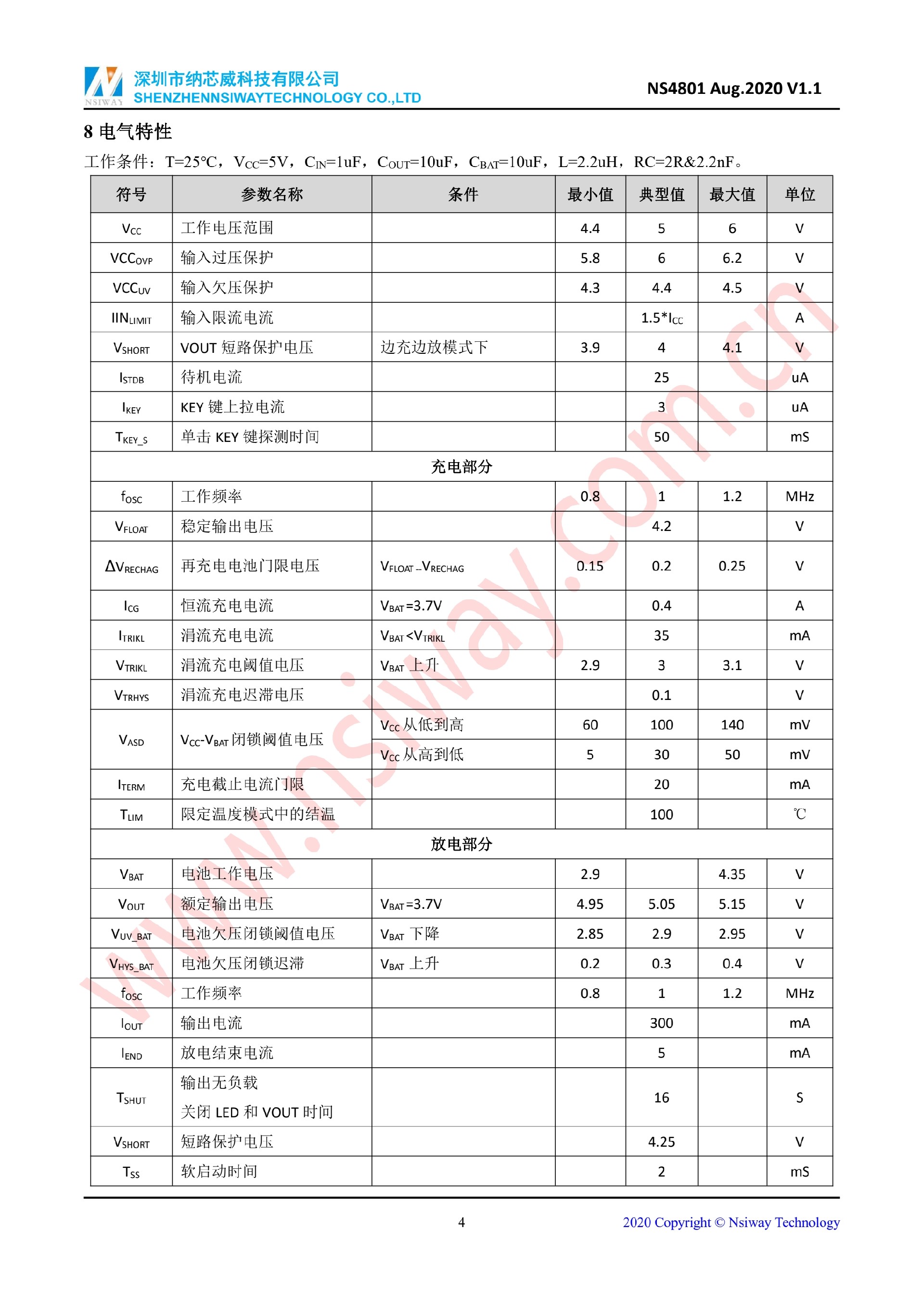 NS4801 藍牙耳機充電倉-鋰電池充放電管理IC(PWM)