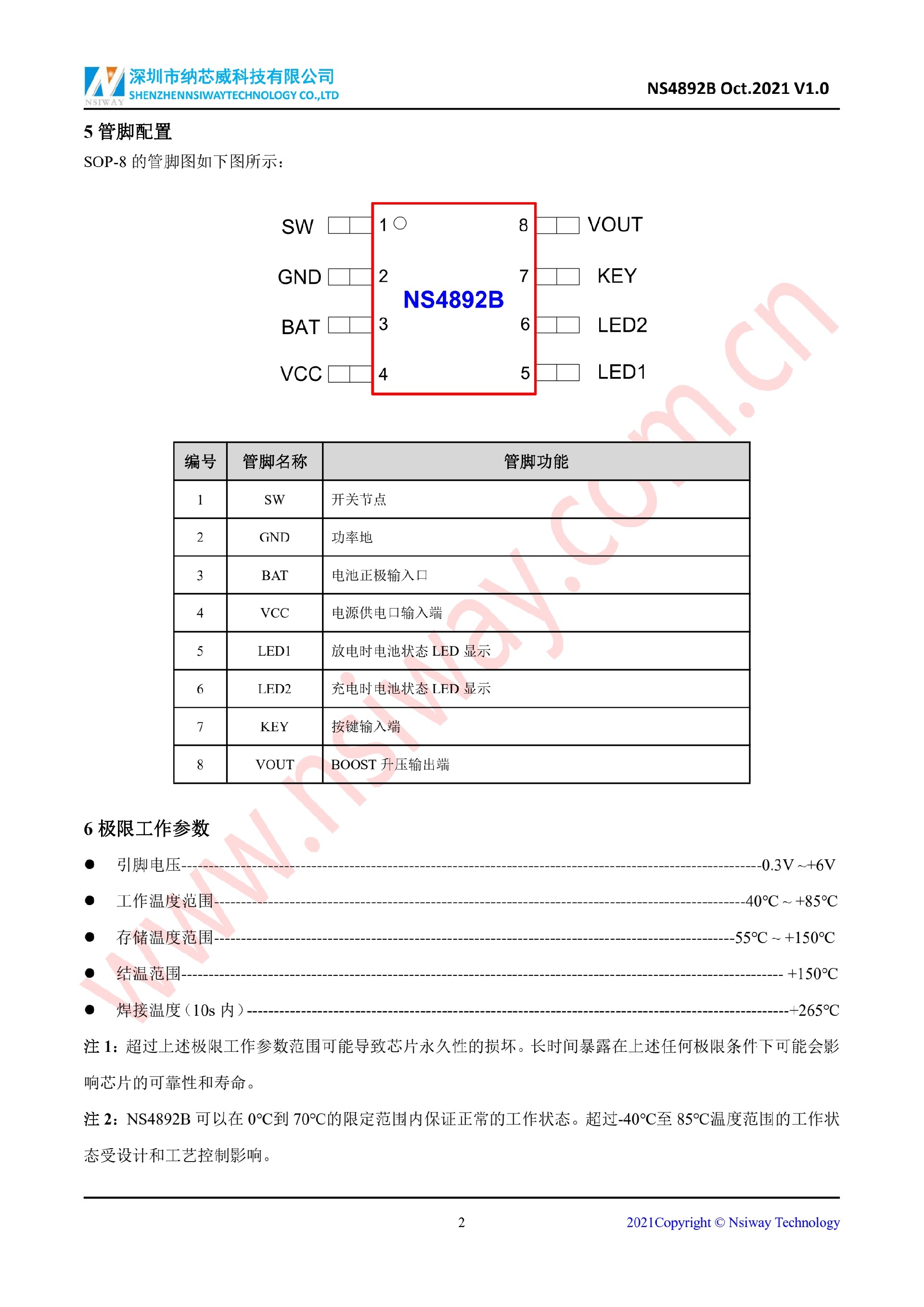 NS4892B 藍(lán)牙耳機(jī)充電倉-線性鋰電池充放電管理 IC