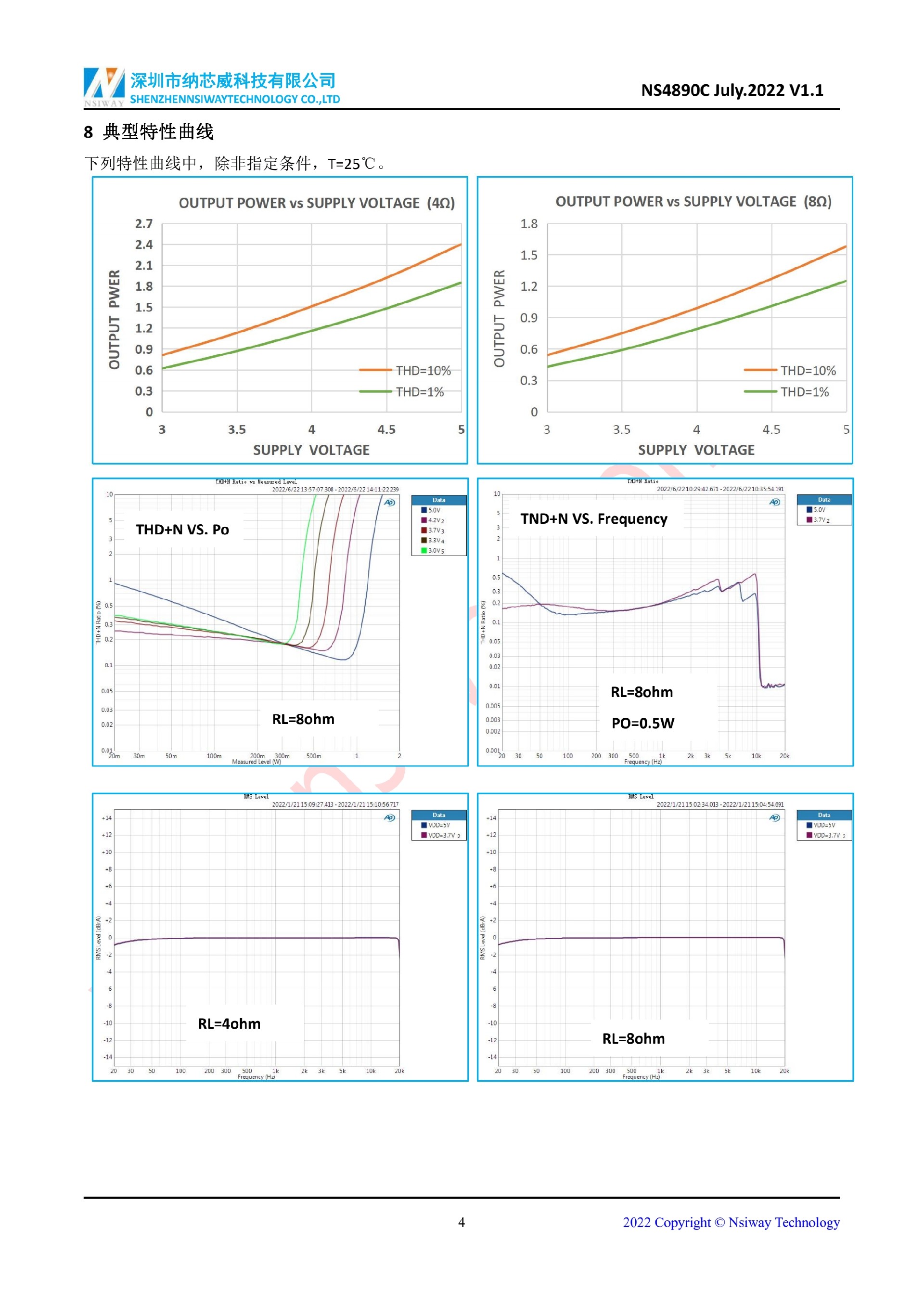 NS4890C 2.4W 單聲道 AB 類音頻功率放大器