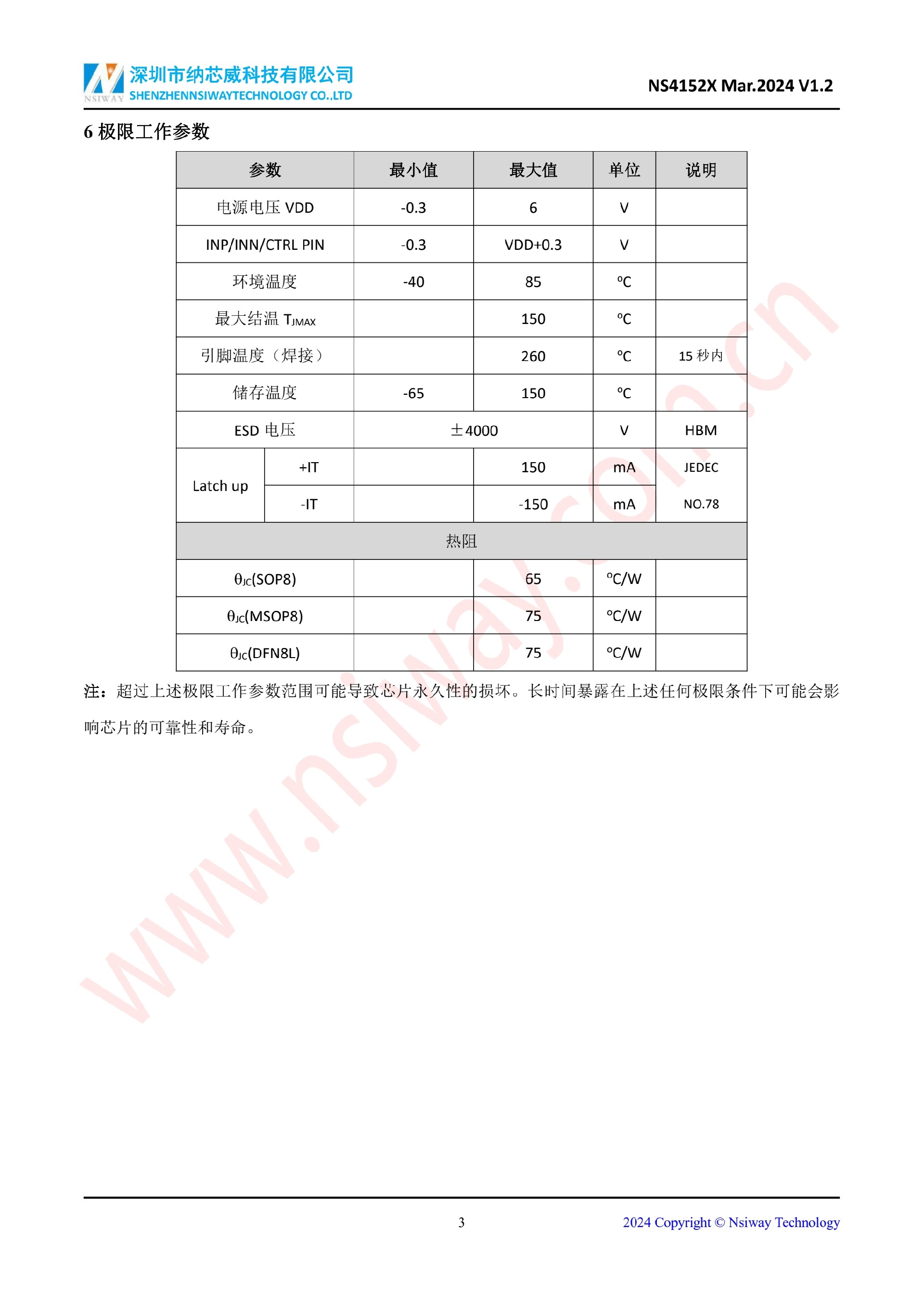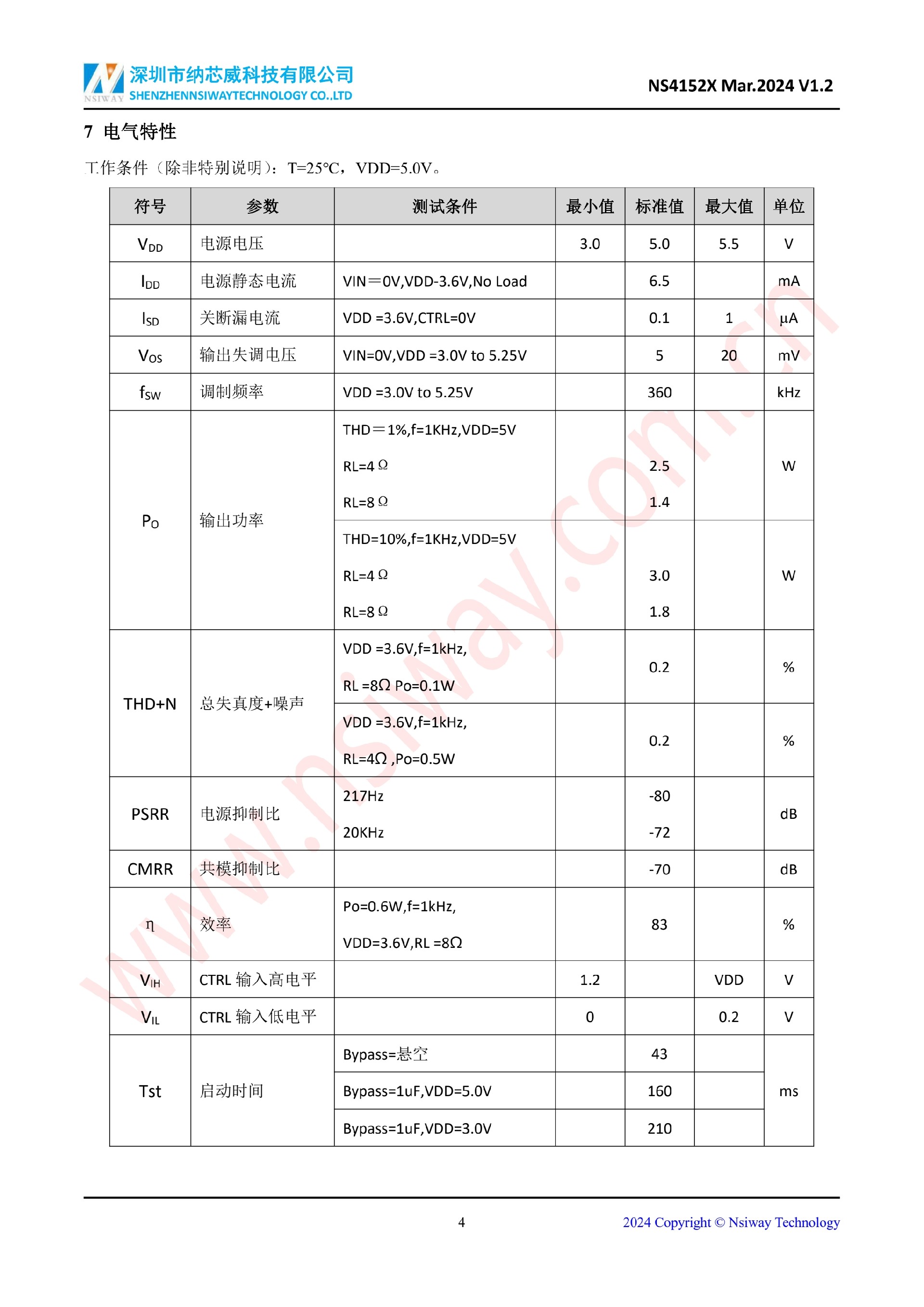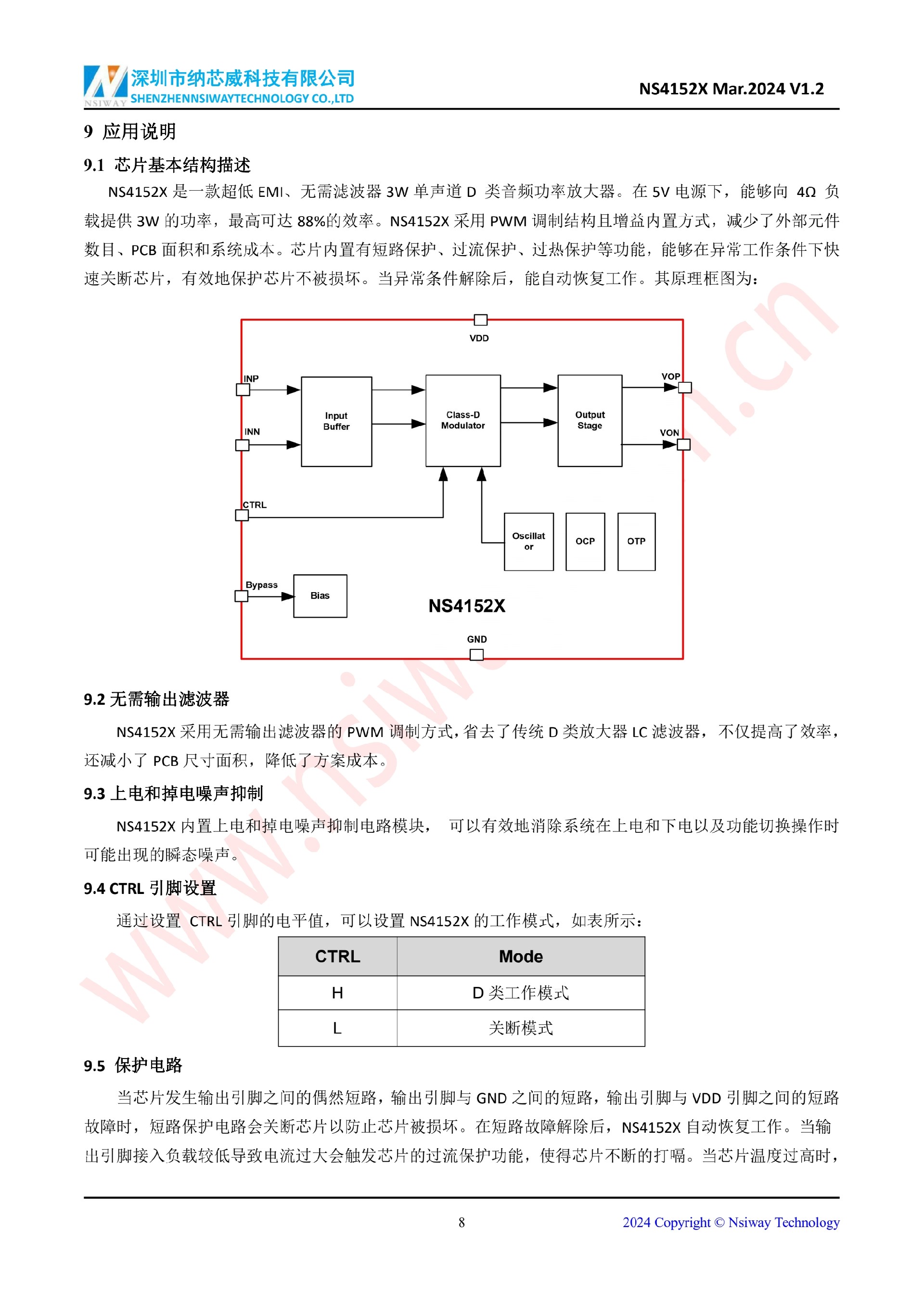 NS4152X 3.0W 單聲道 D 類音頻功率放大器