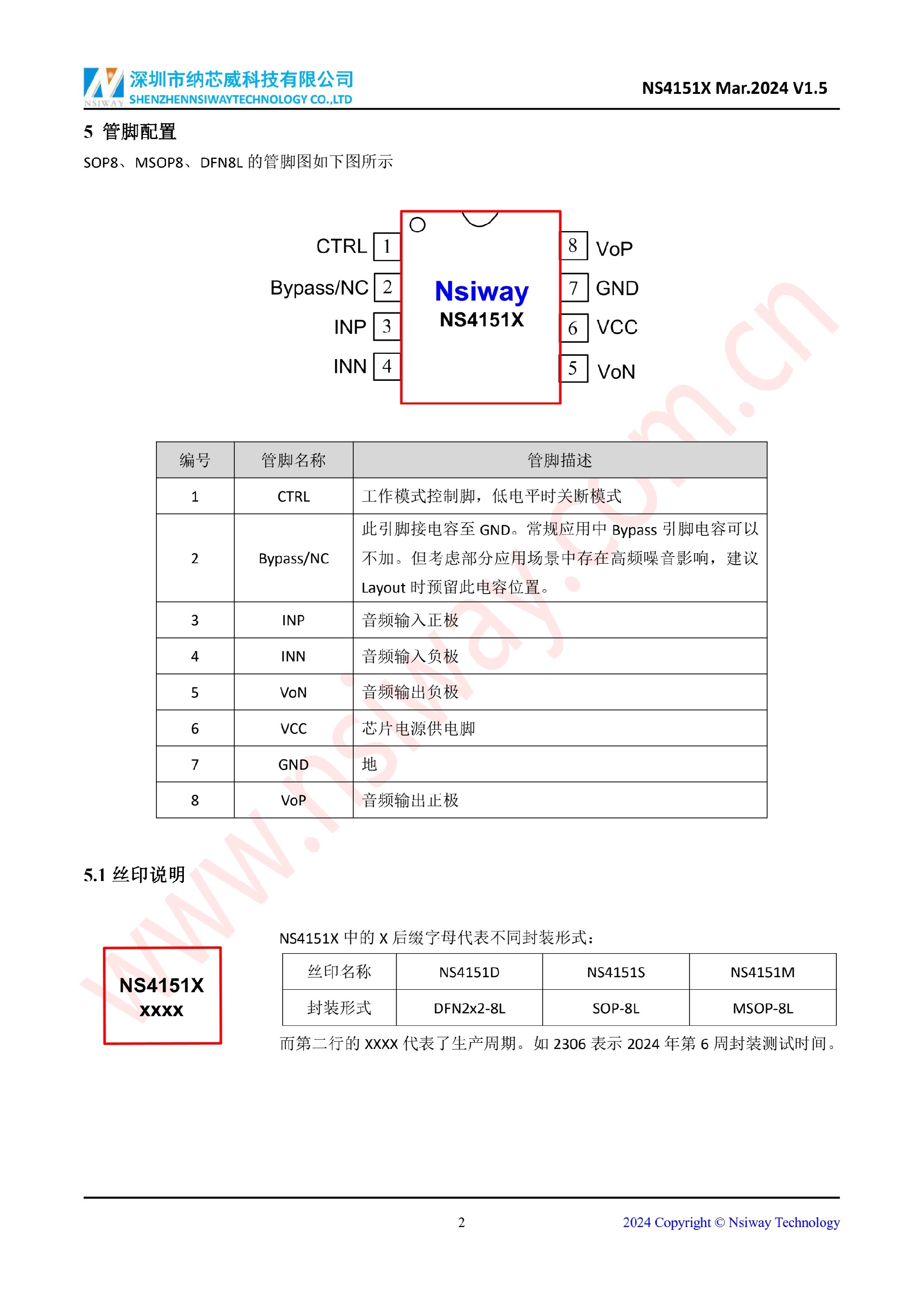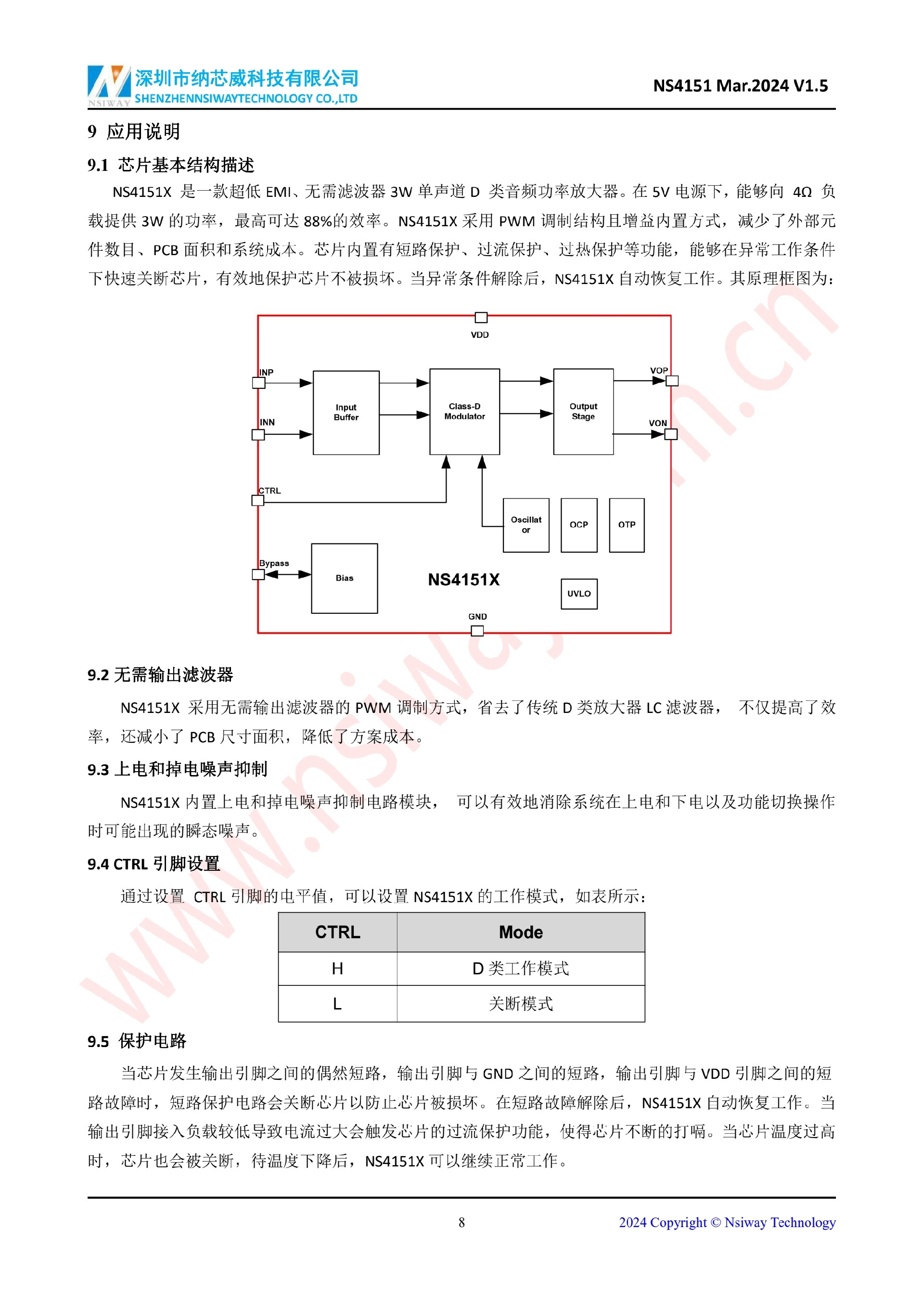 NS4151X 3.0W 單聲道 D 類音頻功率放大器