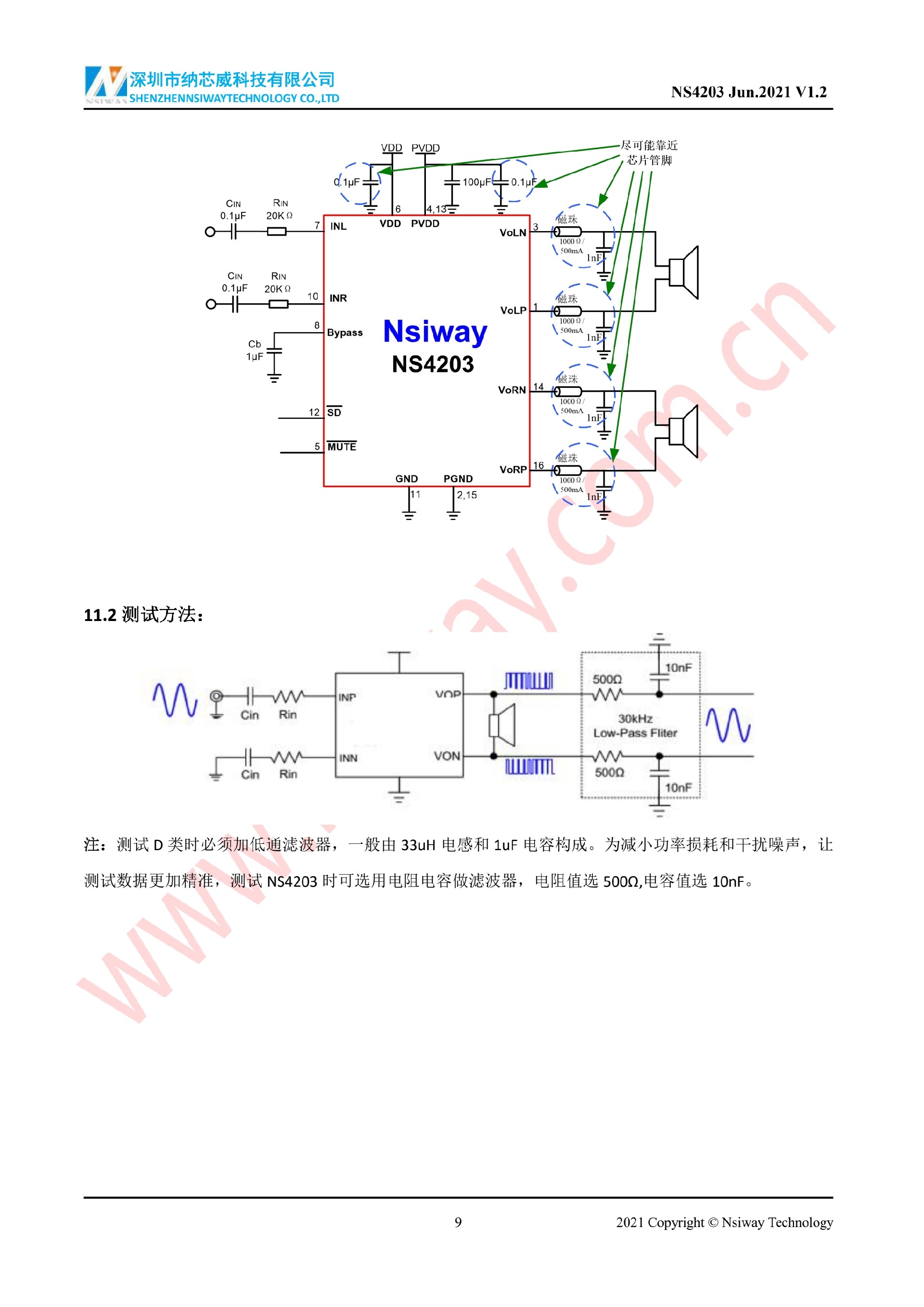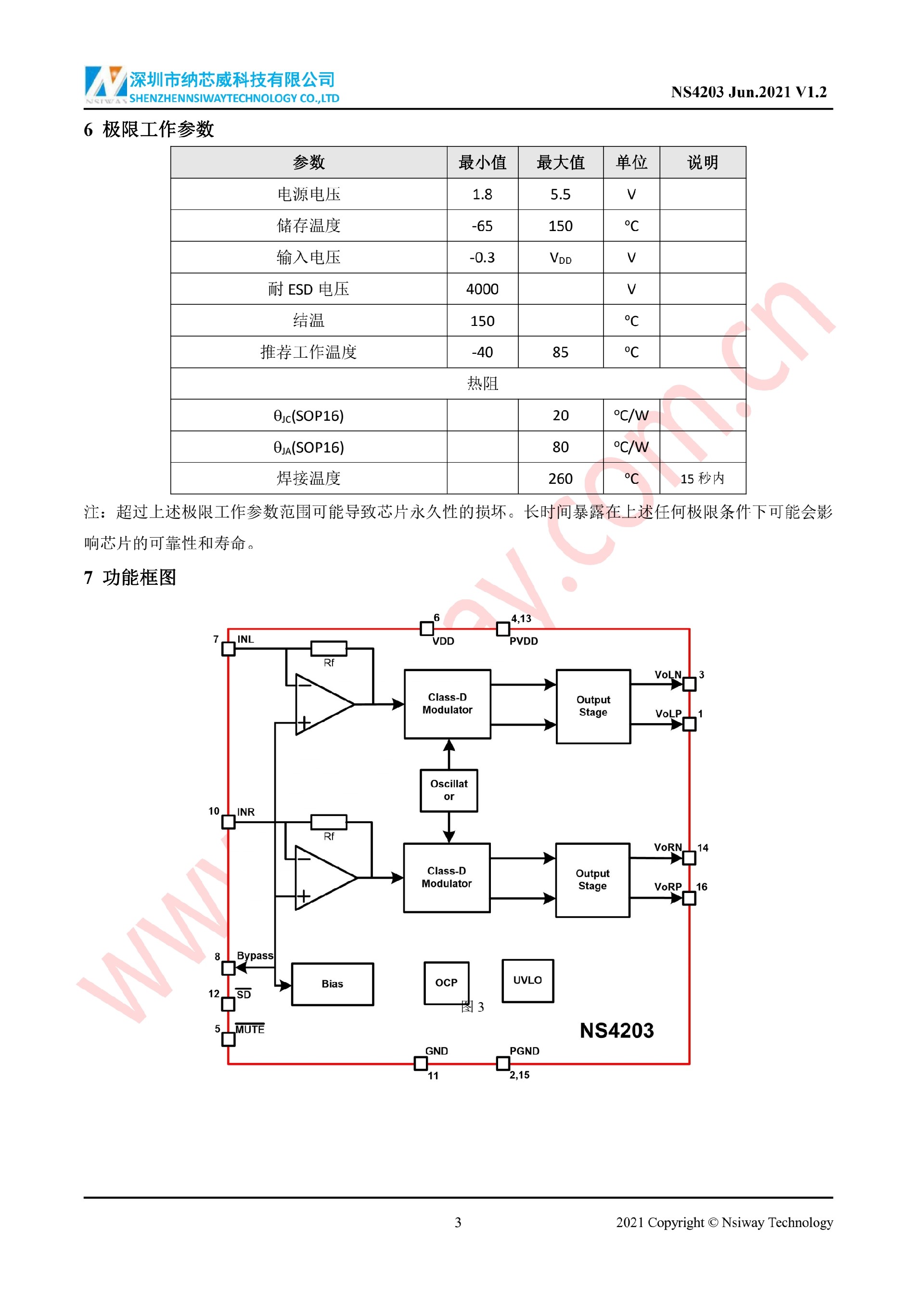 NS4203 3W×2 雙聲道D類音頻功率放大器附加MUTE功能