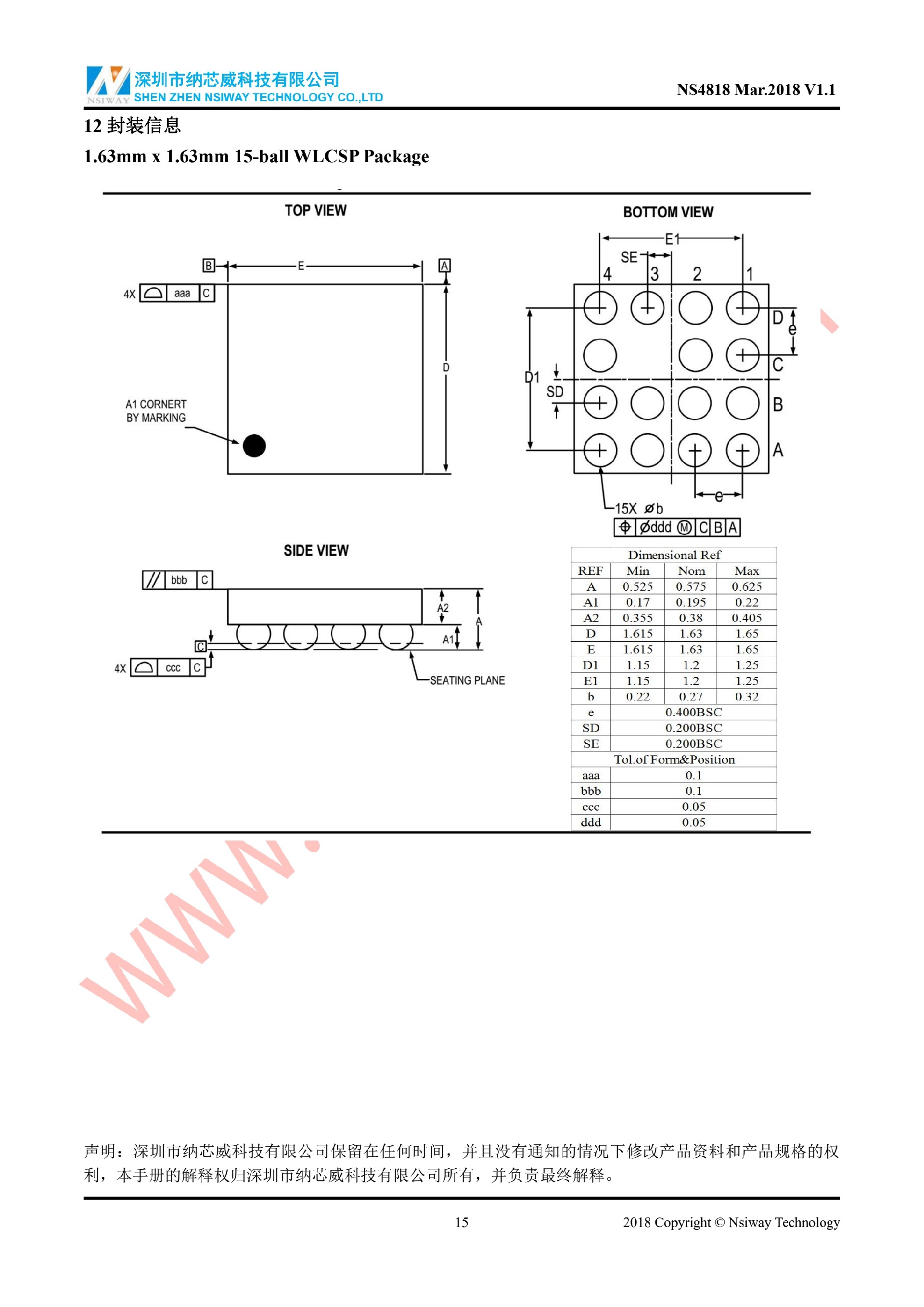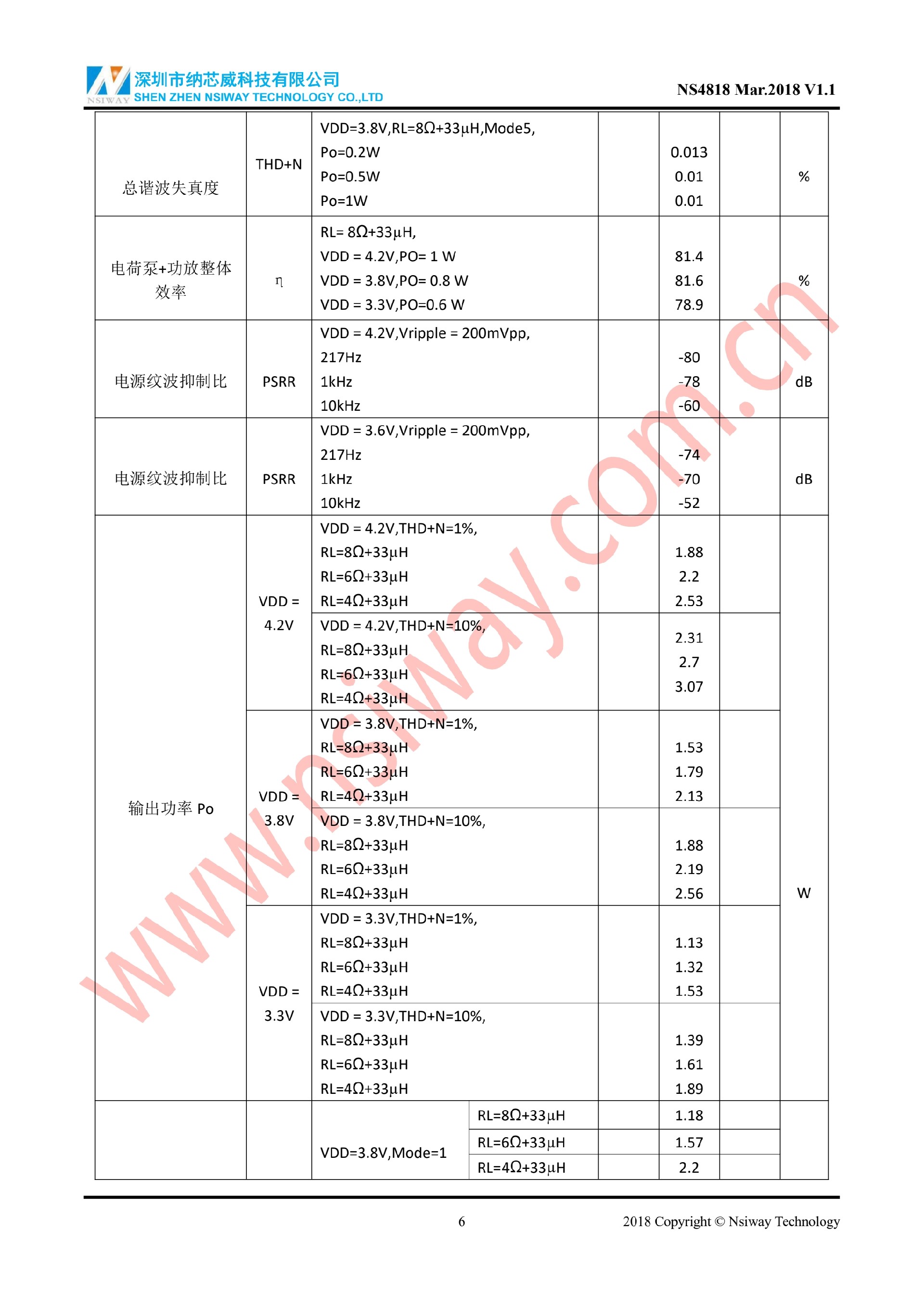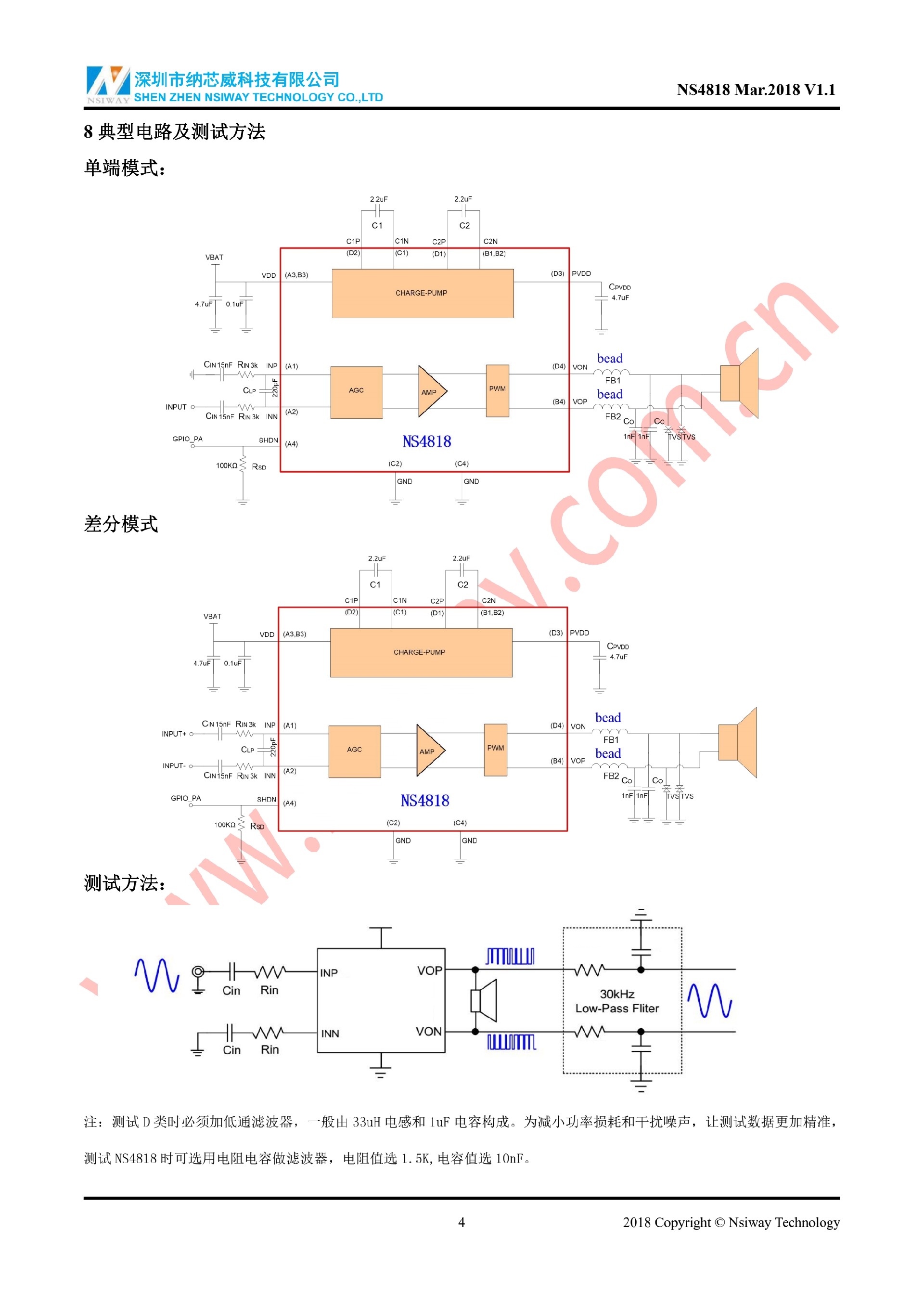 NS4818 單聲道五級恒定輸出功率G類音頻功率放大器(WLCSP)