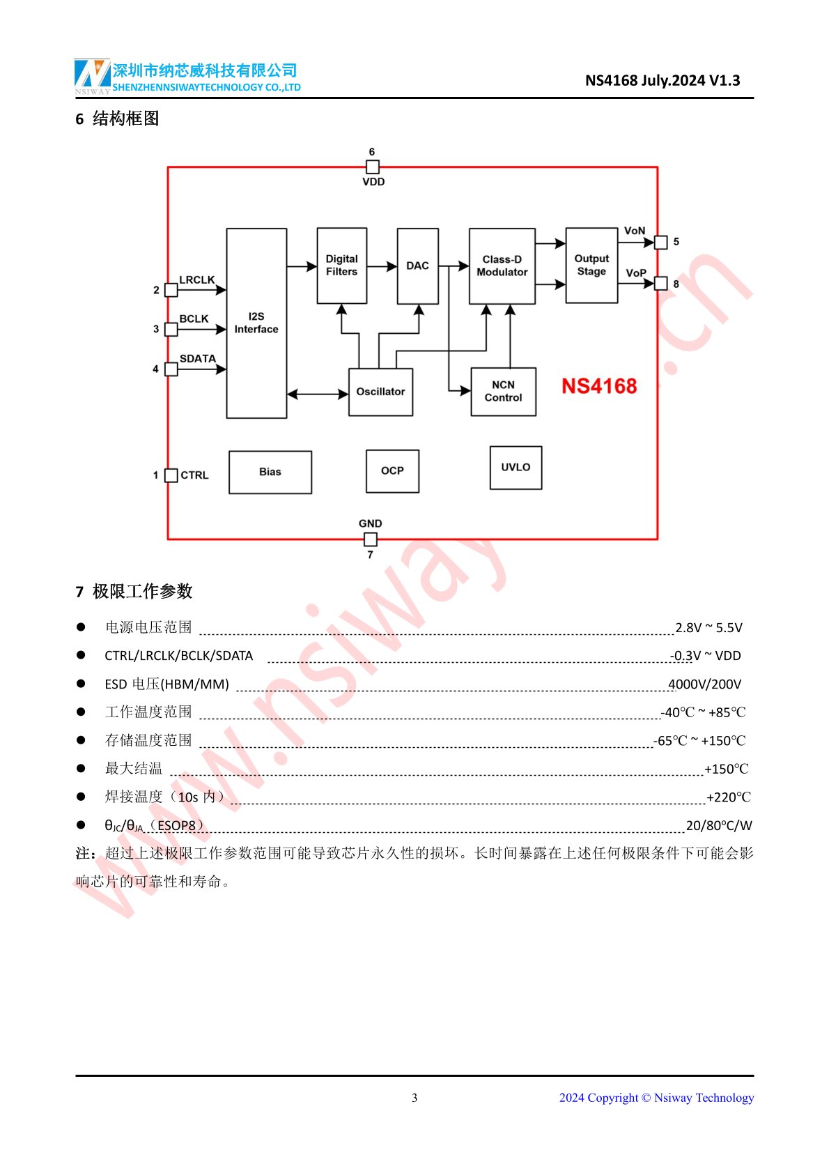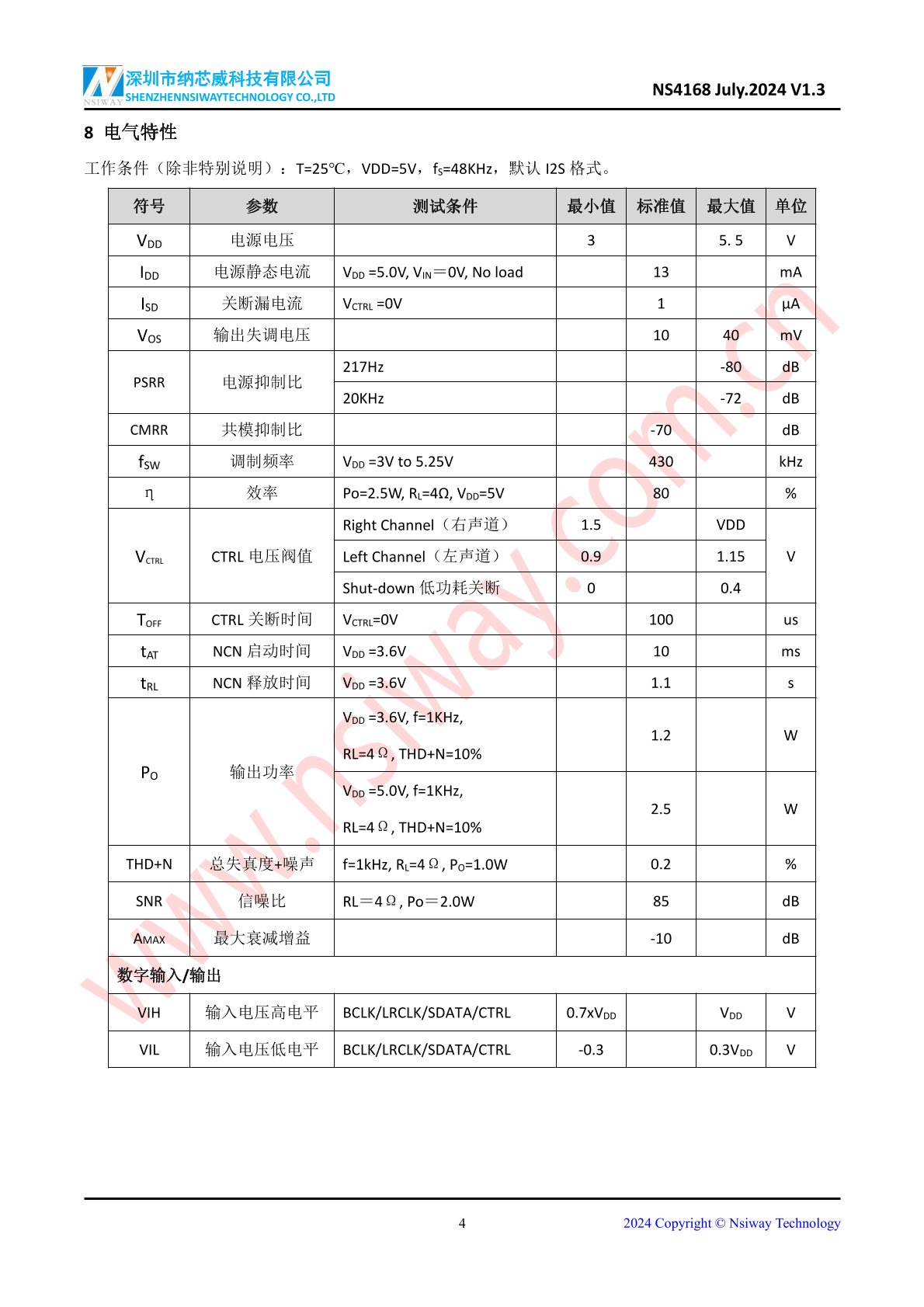 NS4168 2.5W -I2S數(shù)字輸入單聲道D類音頻功率放大器(eSOP-8)