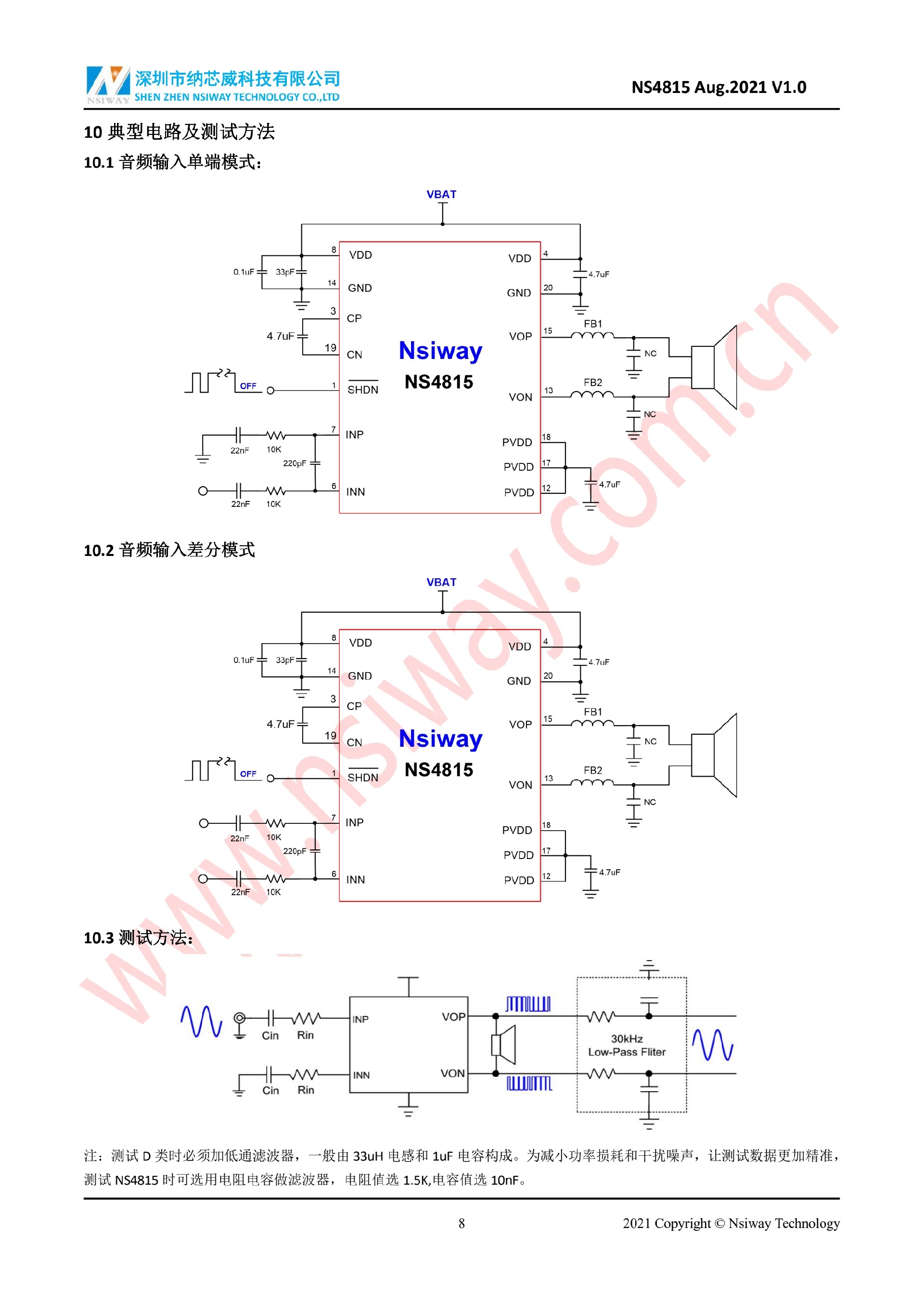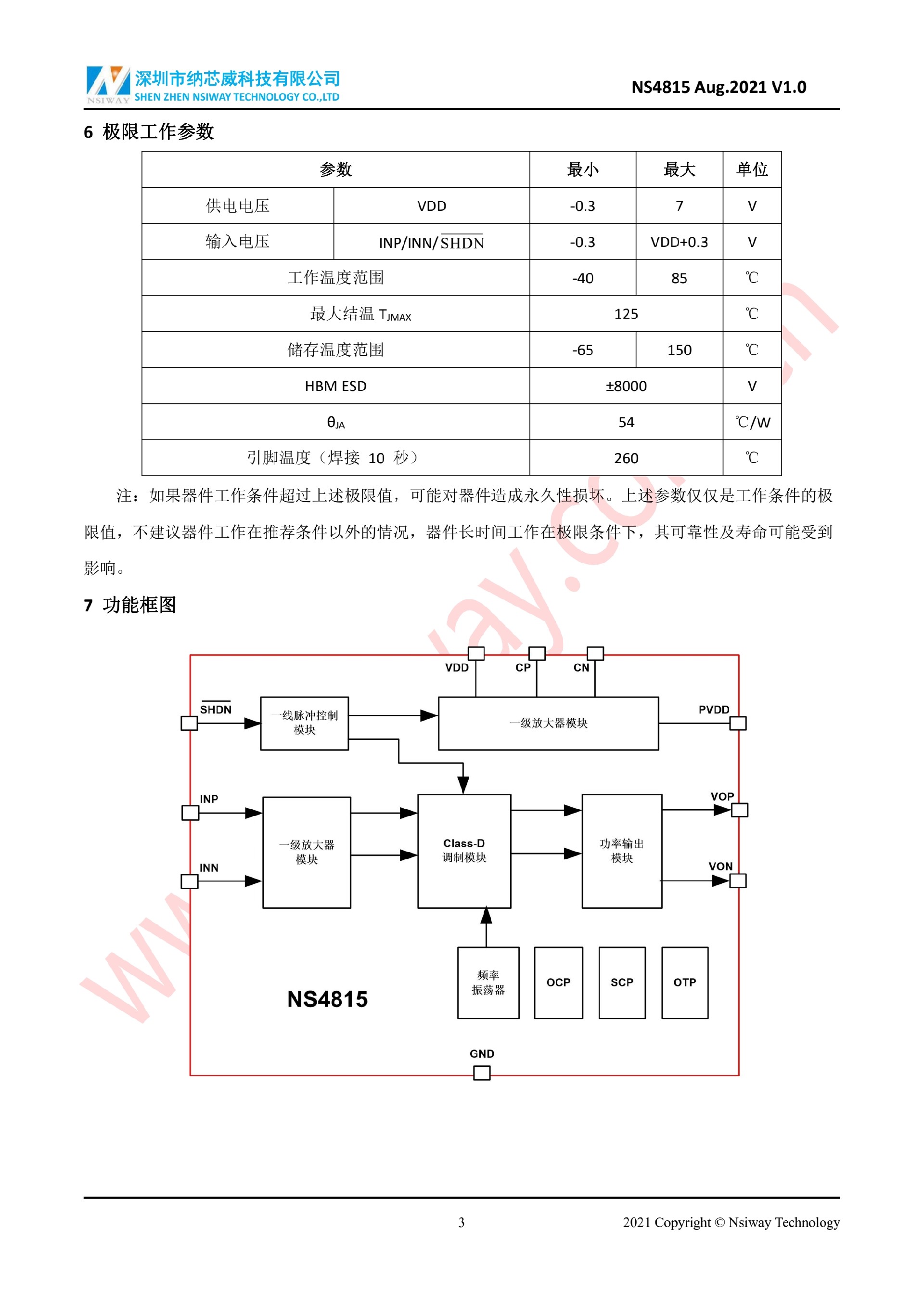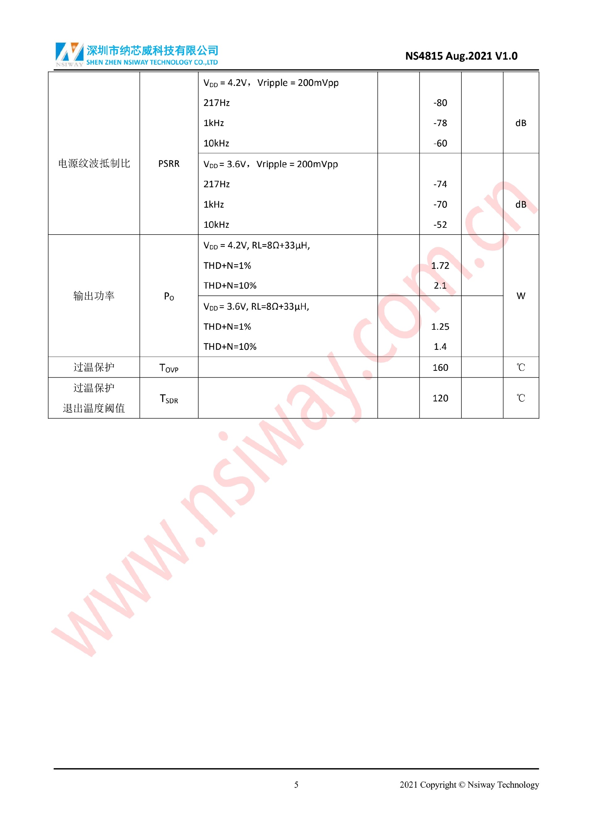 NS4815 2W 輸出功率 K 類音頻功率放大器